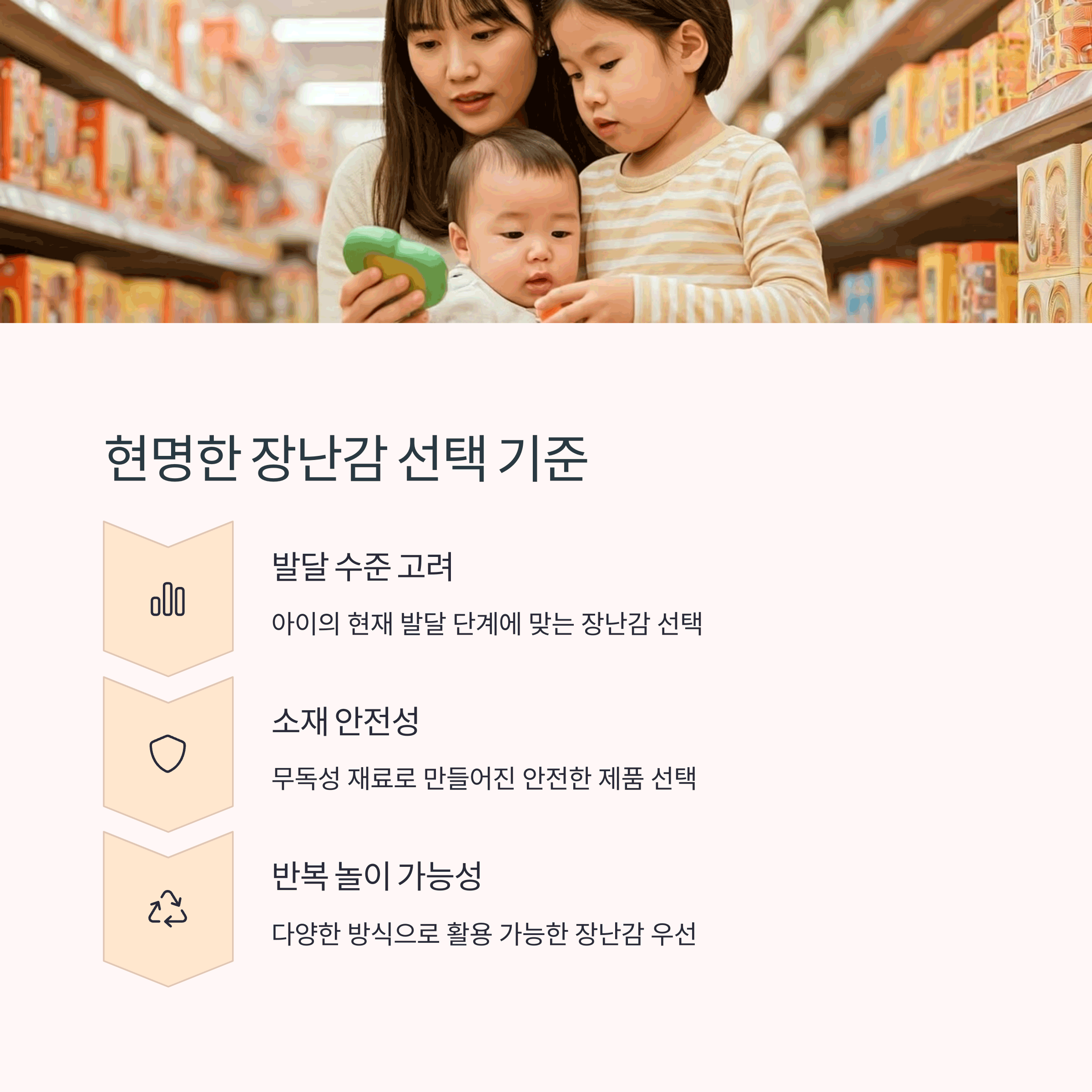 | 빛과 온도 조절도 고려 | 안심 목소리로 대응 | 칭찬과 격려 잊지 않기 |
