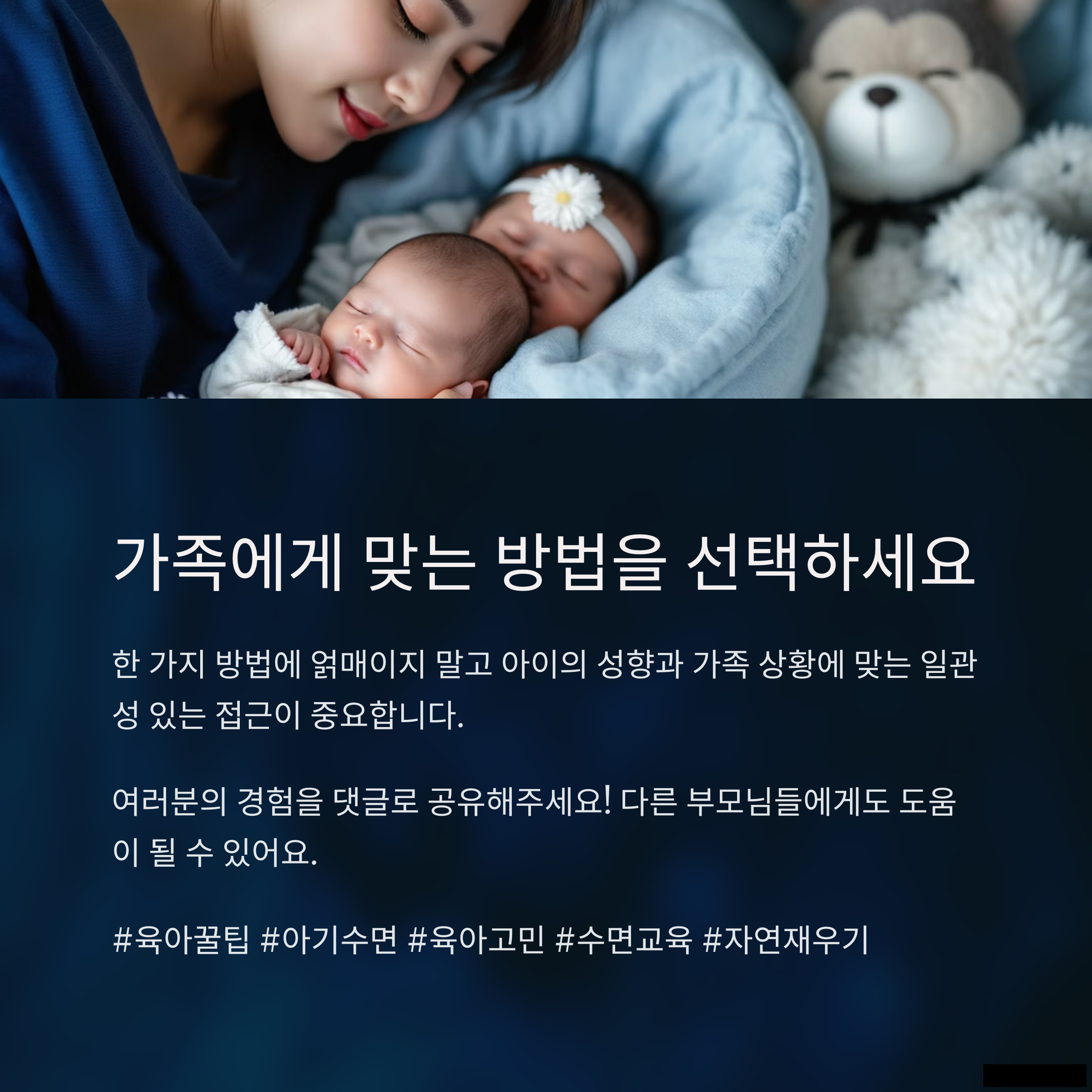 여러분은 어떤 수면 방식을 선택하셨나요? 직접 겪은 경험이나 고민을 댓글로 공유해주세요. 다른 부모님들에게도 큰 도움이 될 수 있습니다!