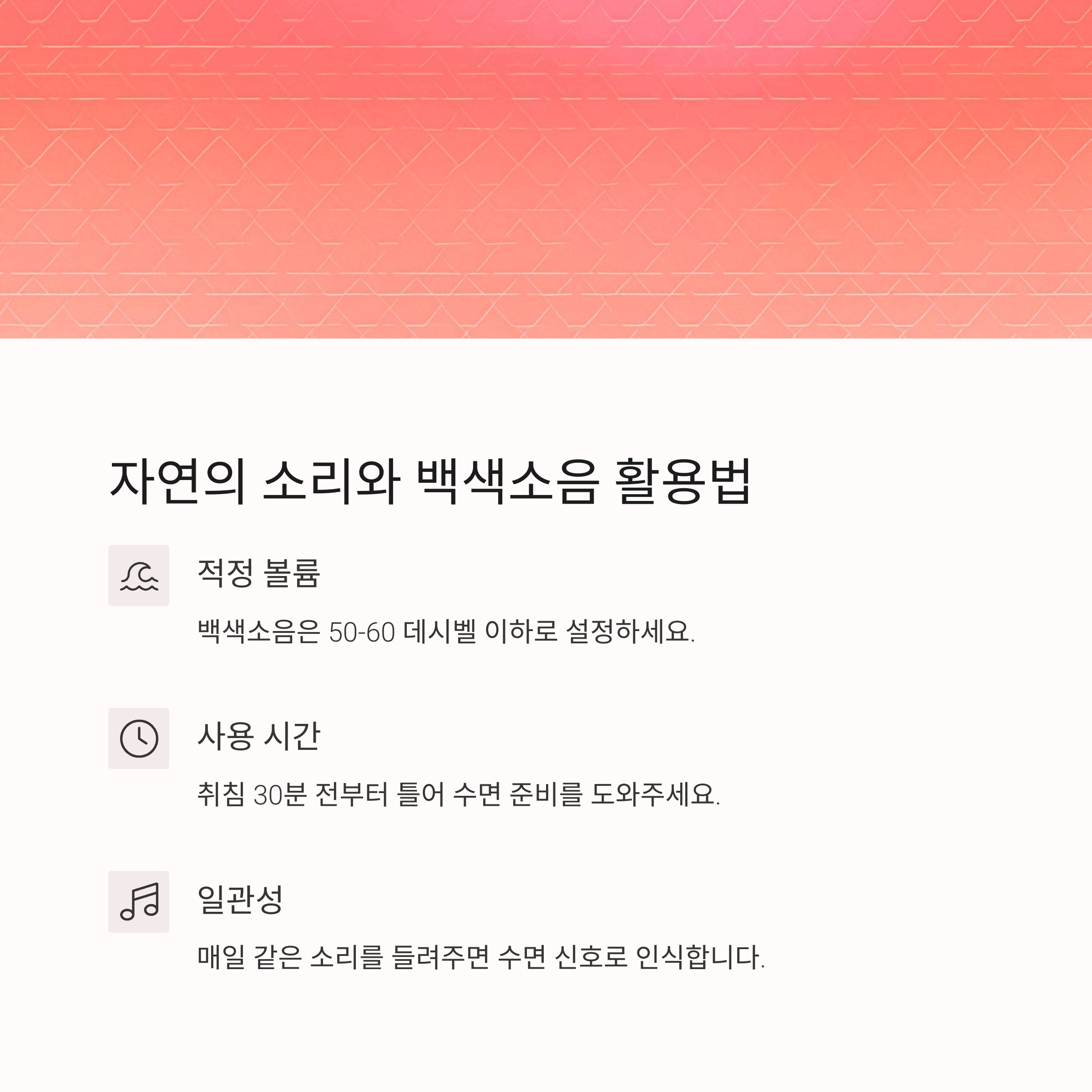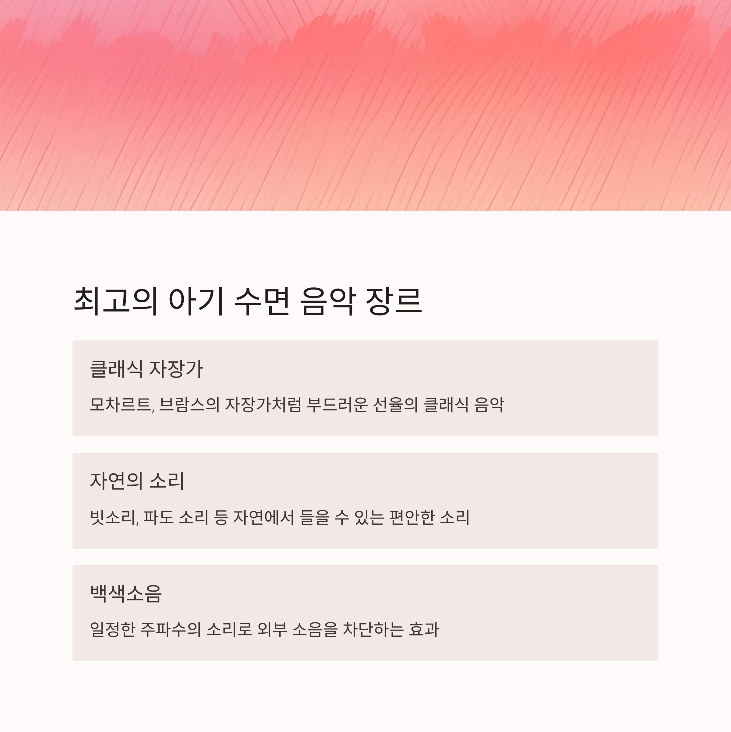 | 자장가 | 백색소음 | 자연의 소리 |