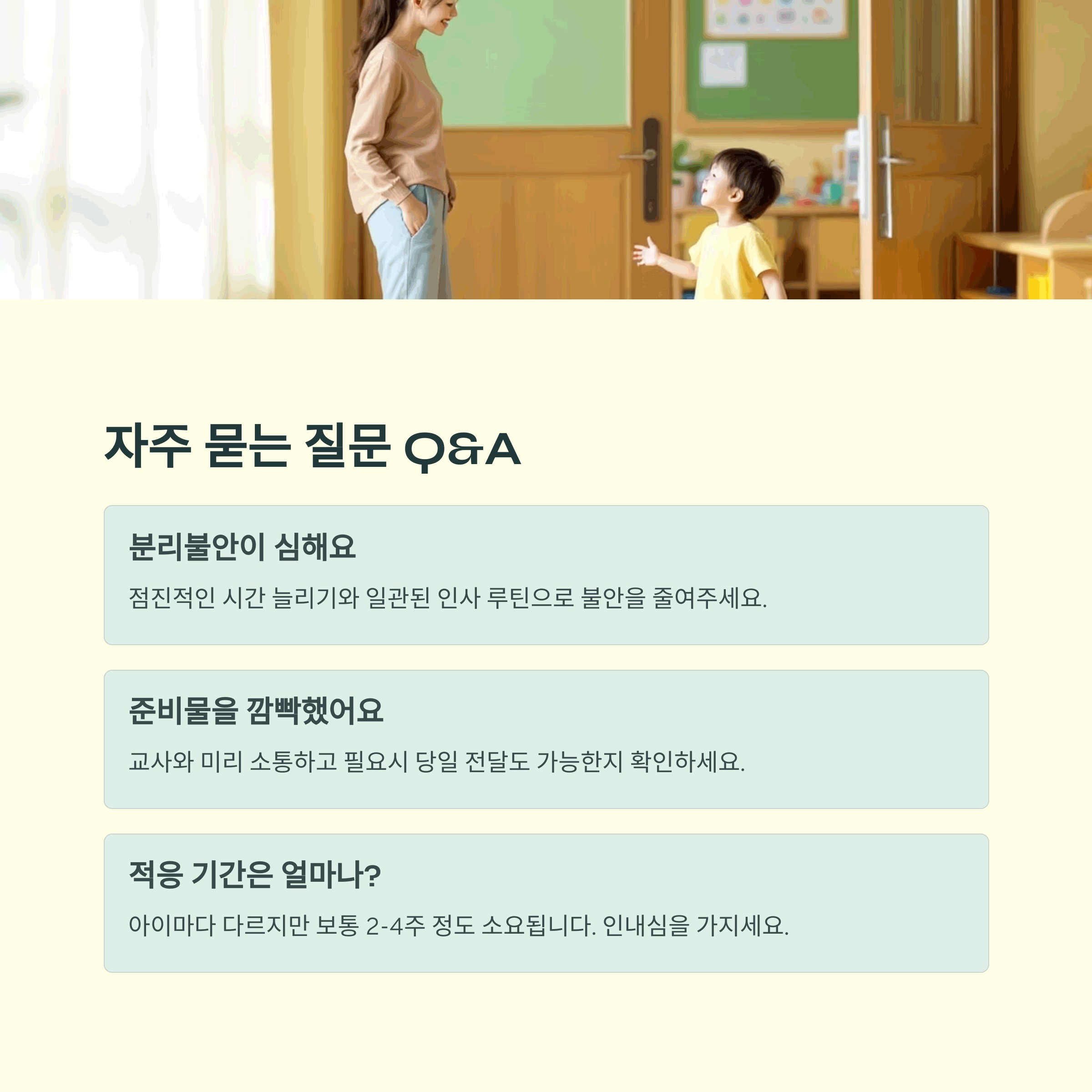 | 정서 준비 | 분리불안 완화를 위한 대화가 중요합니다. |