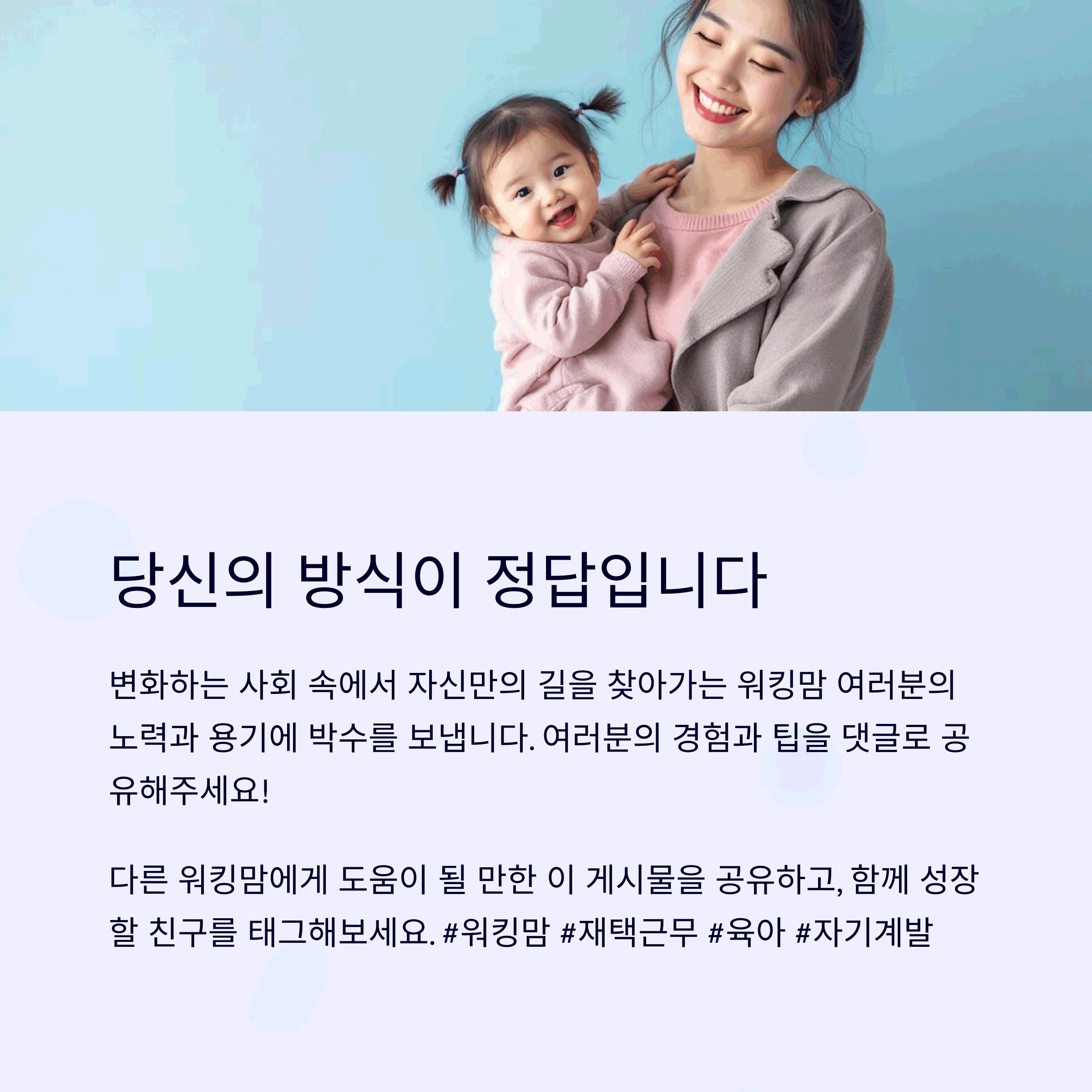 여러분은 육아와 일을 어떻게 병행하고 계신가요? 댓글로 여러분의 경험과 팁을 나눠주세요. 소통을 통해 더 많은 도움이 오갈 수 있답니다!