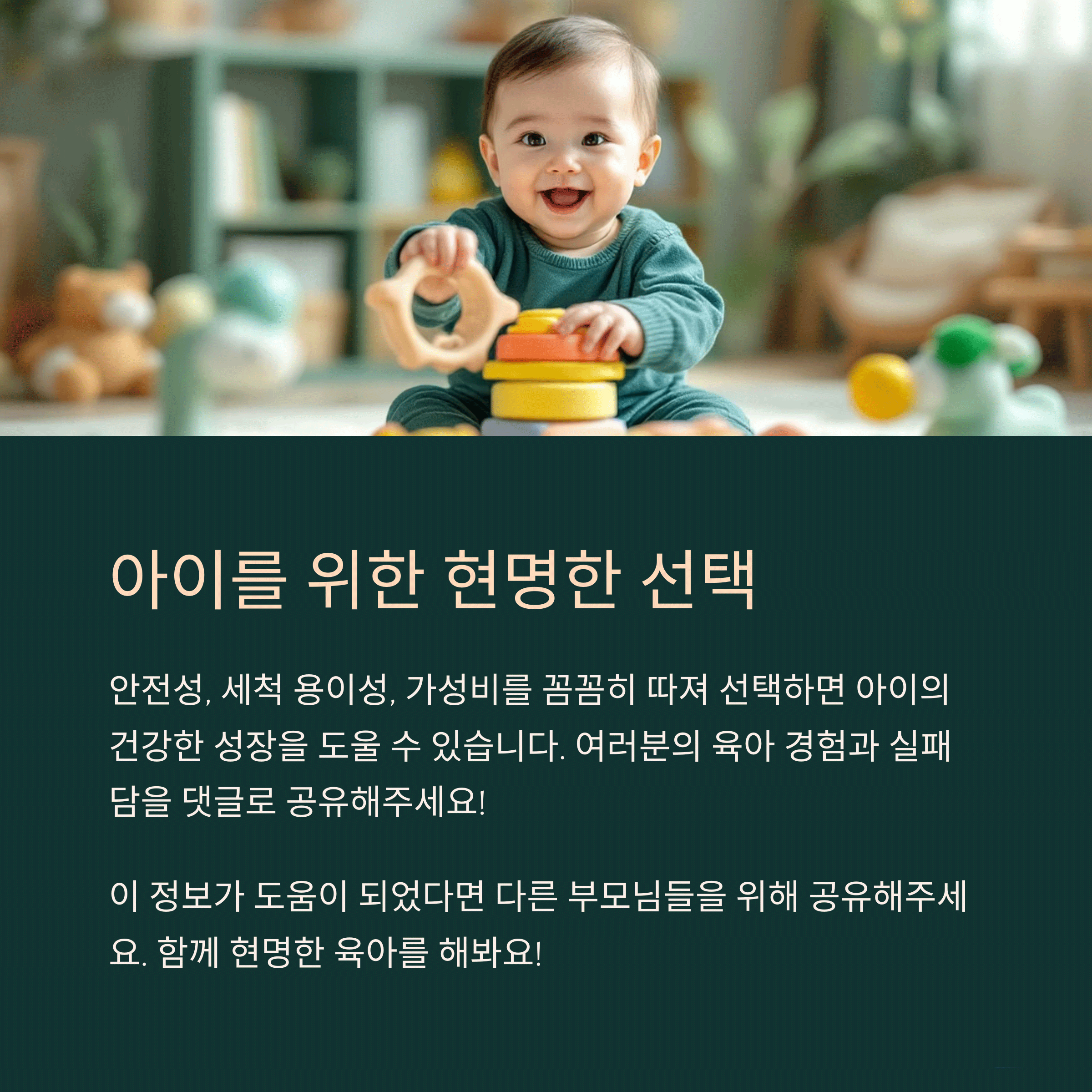 여러분은 육아용품을 고를 때 어떤 기준을 가장 중요하게 생각하시나요? 혹시 실패했던 제품이나 꼭 추천하고 싶은 아이템이 있다면 댓글로 공유해주세요! 소중한 경험은 또 다른 부모님께 큰 도움이 됩니다.