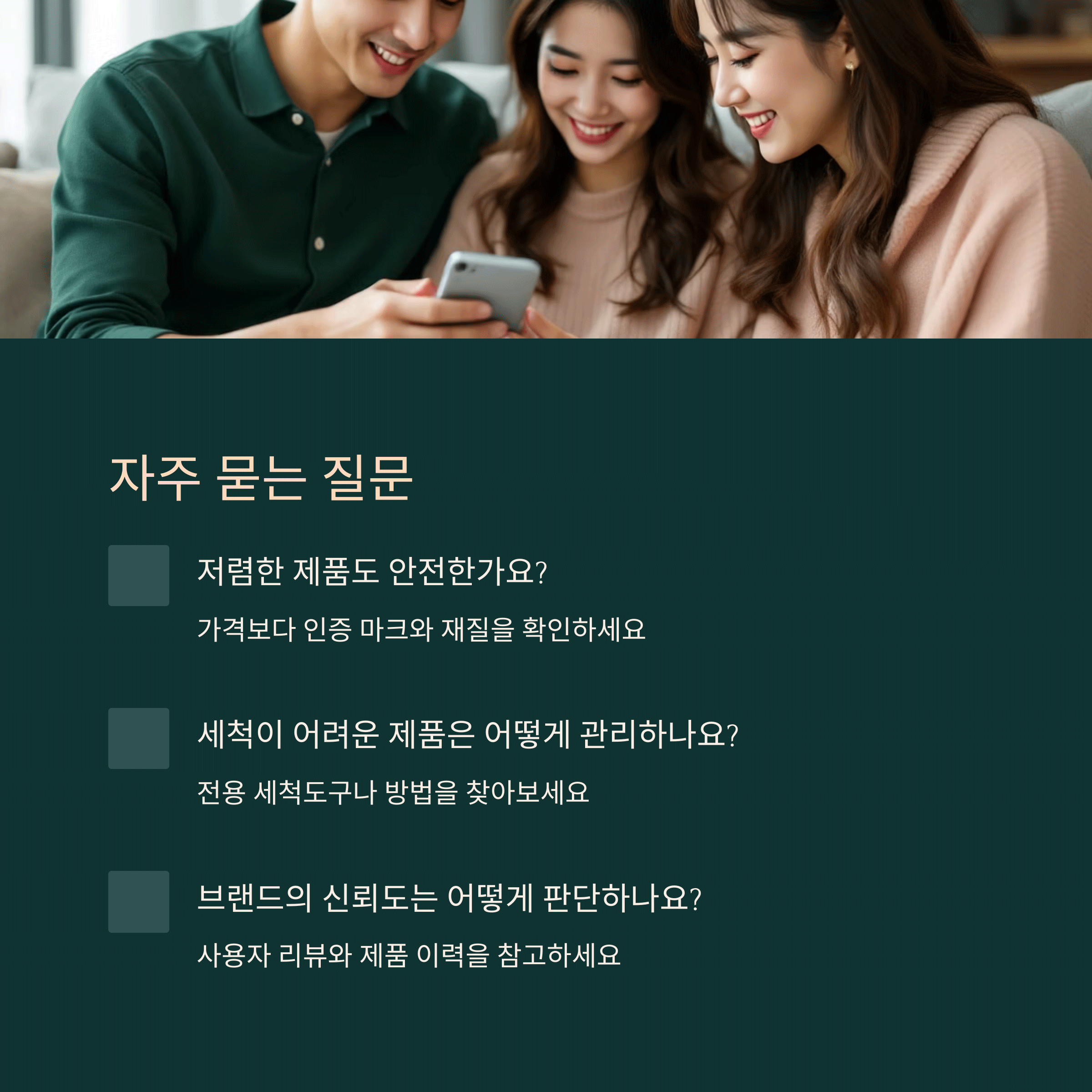 | 안전성 | 세척 용이성 | 가성비 |