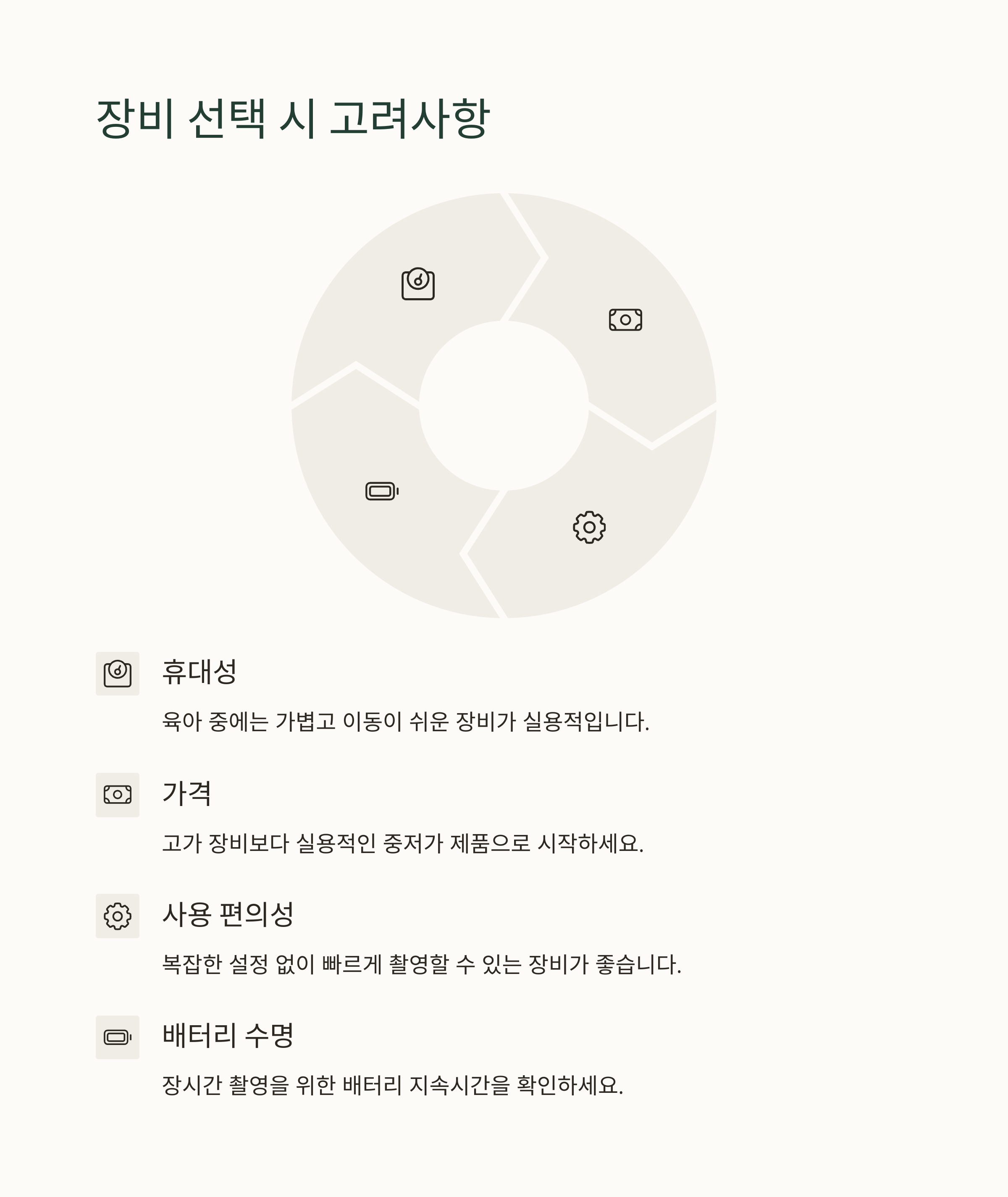 | 촬영 장비 기준 | 실용성, 휴대성, 가격대를 중심으로 선택 |
