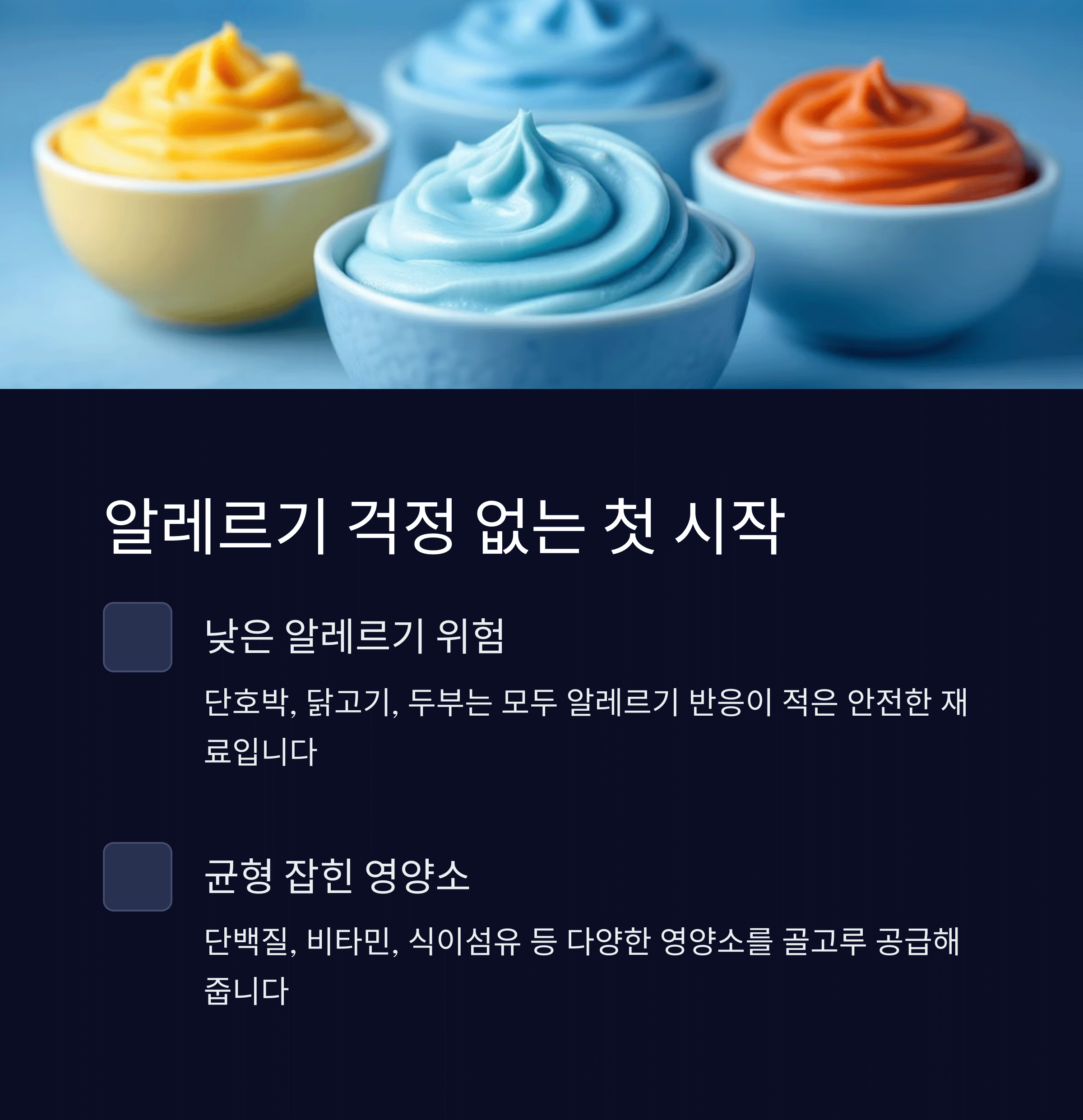 아이의 첫 이유식은 단순한 음식 그 이상입니다. 생애 처음으로 다양한 영양소를 섭취하는 단계이기 때문에, 무엇을 선택하느냐에 따라 아이의 면역력, 성장 발달, 소화 기능에 큰 차이를 만들어낼 수 있습니다. 특히 단호박, 닭고기, 두부 등은 부드럽고 알레르기 위험이 낮아 초보 이유식에 적합합니다. 소화가 잘 되고 맛도 순한 단호박은 자연스러운 단맛으로 아이들의 거부감을 줄여줍니다. 이러한 재료를 활용해 부드러운 퓨레나 묽은 죽 형태로 시작하면 아이의 위장에 부담을 주지 않으면서도 영양을 효과적으로 공급할 수 있습니다.