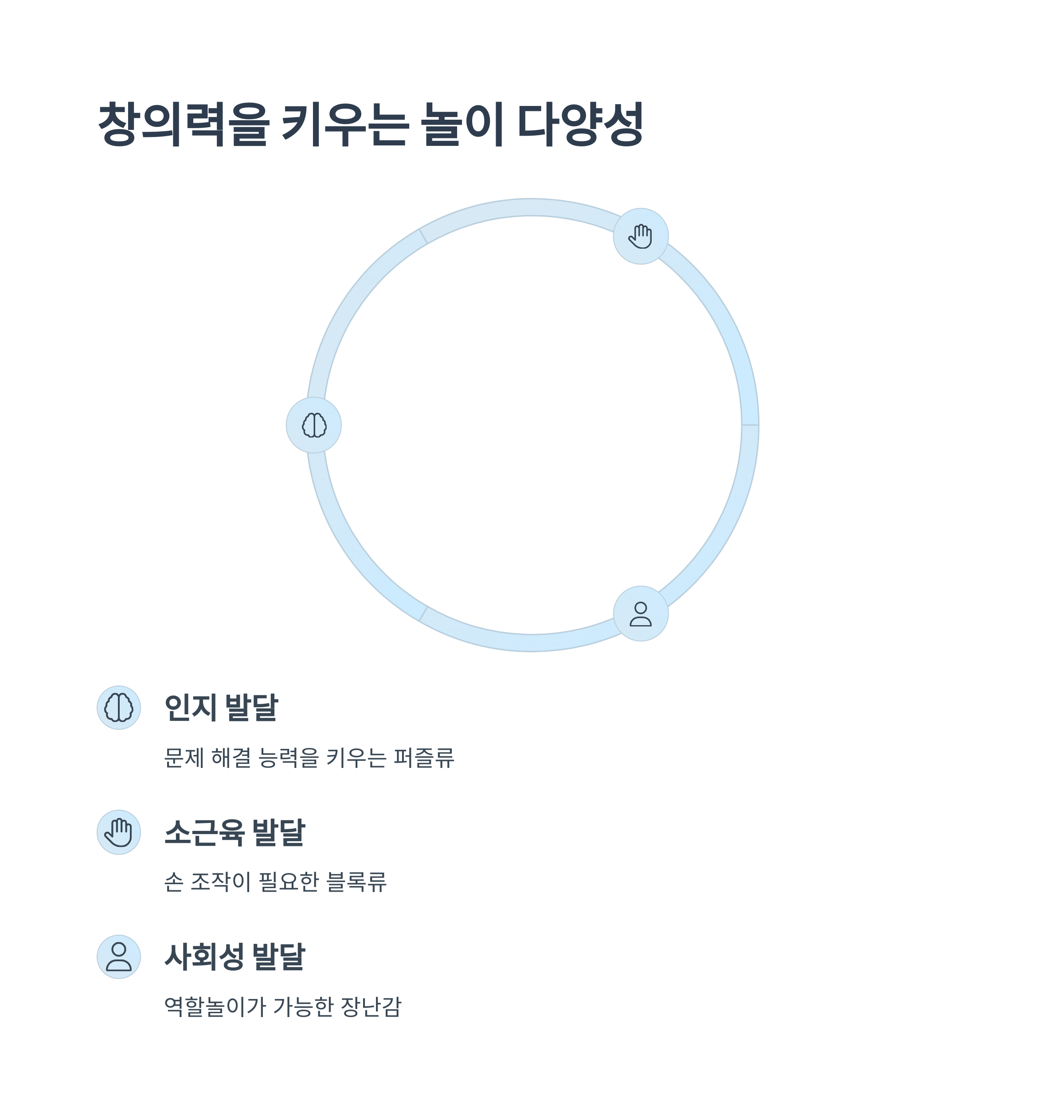 마지막으로 고려해야 할 기준은 놀이의 다양성입니다. 하나의 장난감으로 다양한 놀이가 가능할수록 아이의 창의력과 사고력이 자랍니다. 단순히 누르면 소리만 나는 장난감보다 조작 가능한 블록, 상상력을 자극하는 소꿉놀이, 직접 그림을 그릴 수 있는 놀이용품이 훨씬 더 풍부한 자극을 제공합니다. 부모와 함께 상호작용할 수 있는 장난감이라면 아이의 언어발달과 정서적 안정에도 긍정적인 영향을 줍니다.