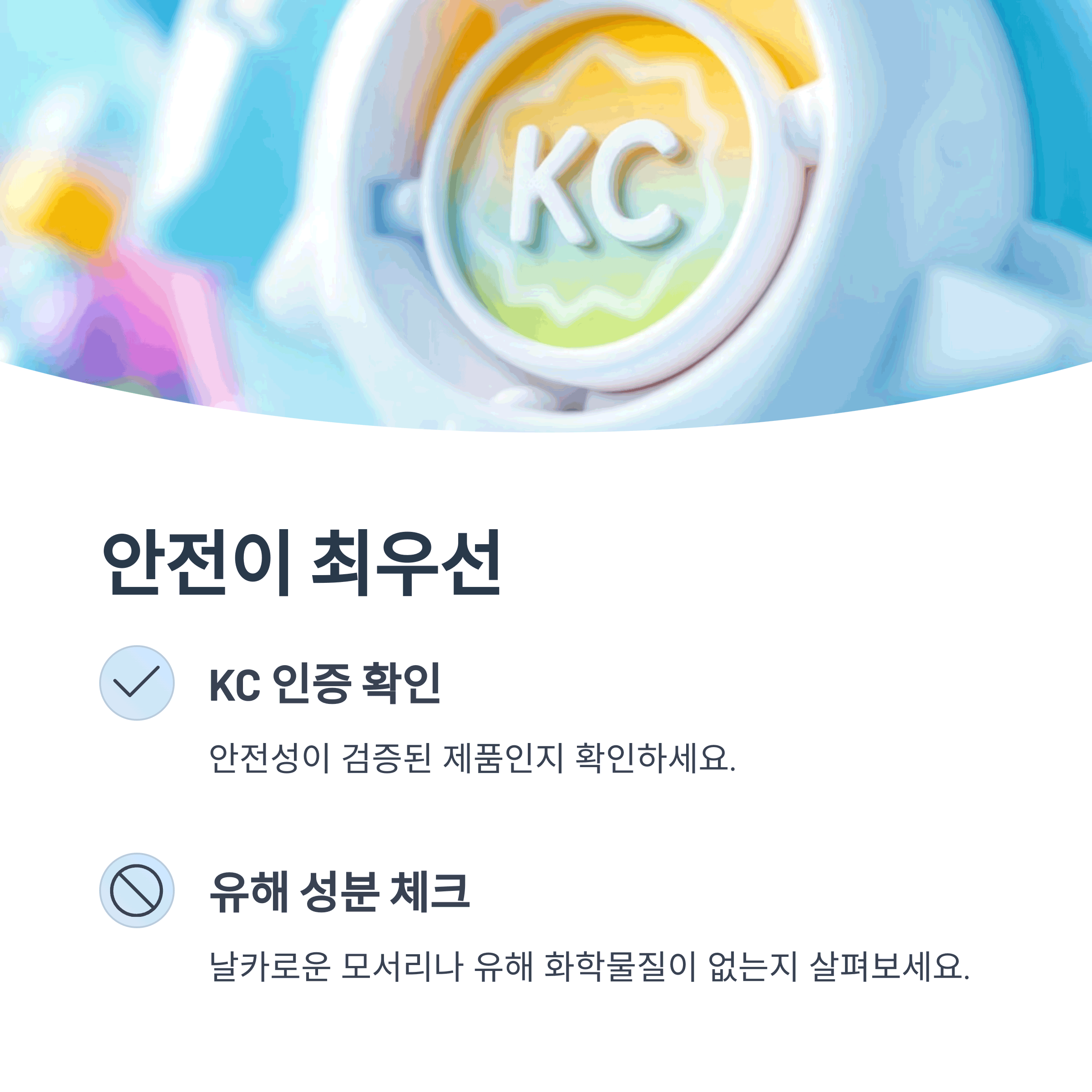 | 안전성 기준 | KC 인증 여부 및 날카로운 모서리 유무 확인 |