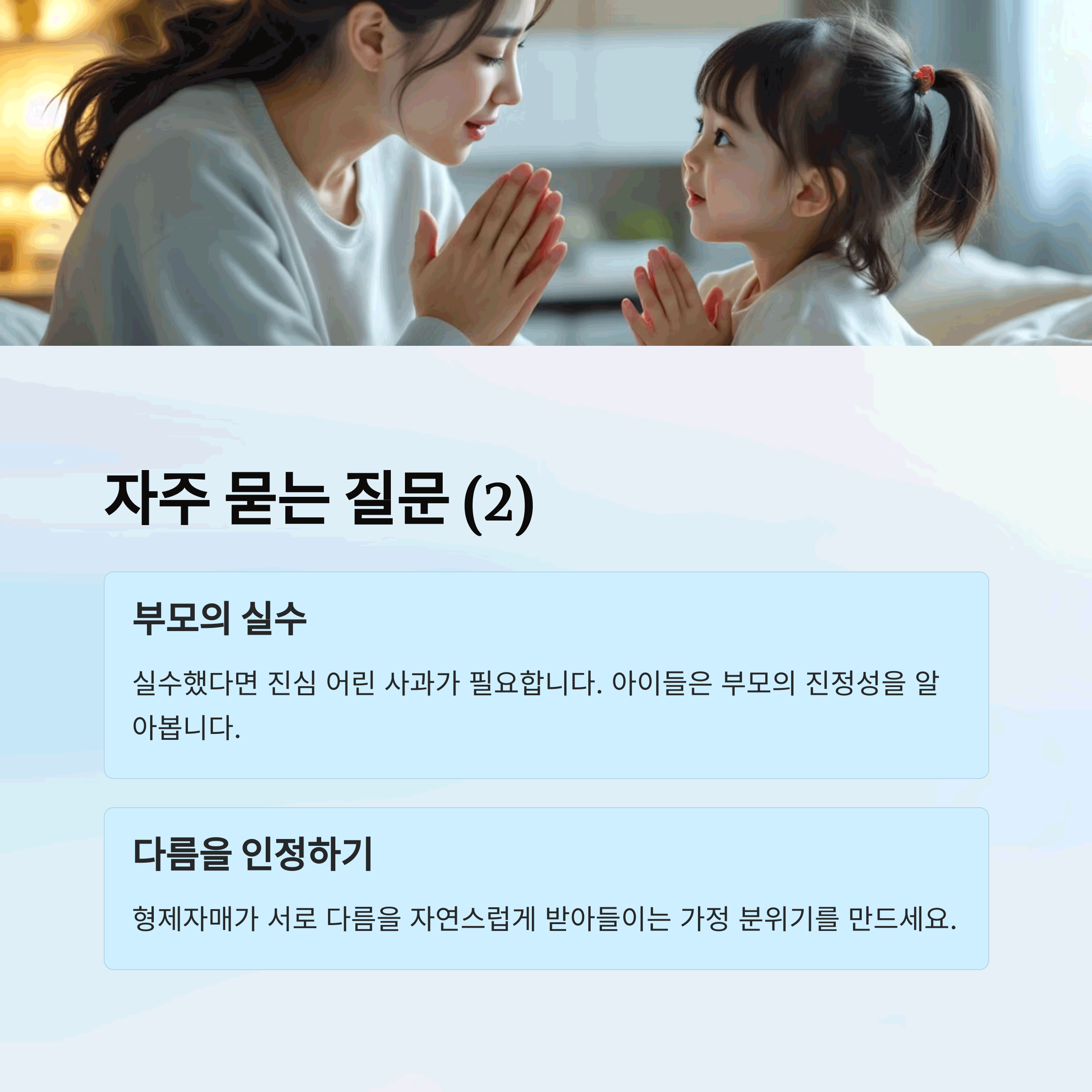 | 부모 역할 | 아이들의 감정을 이해하고 상황별로 맞춤 대응 |