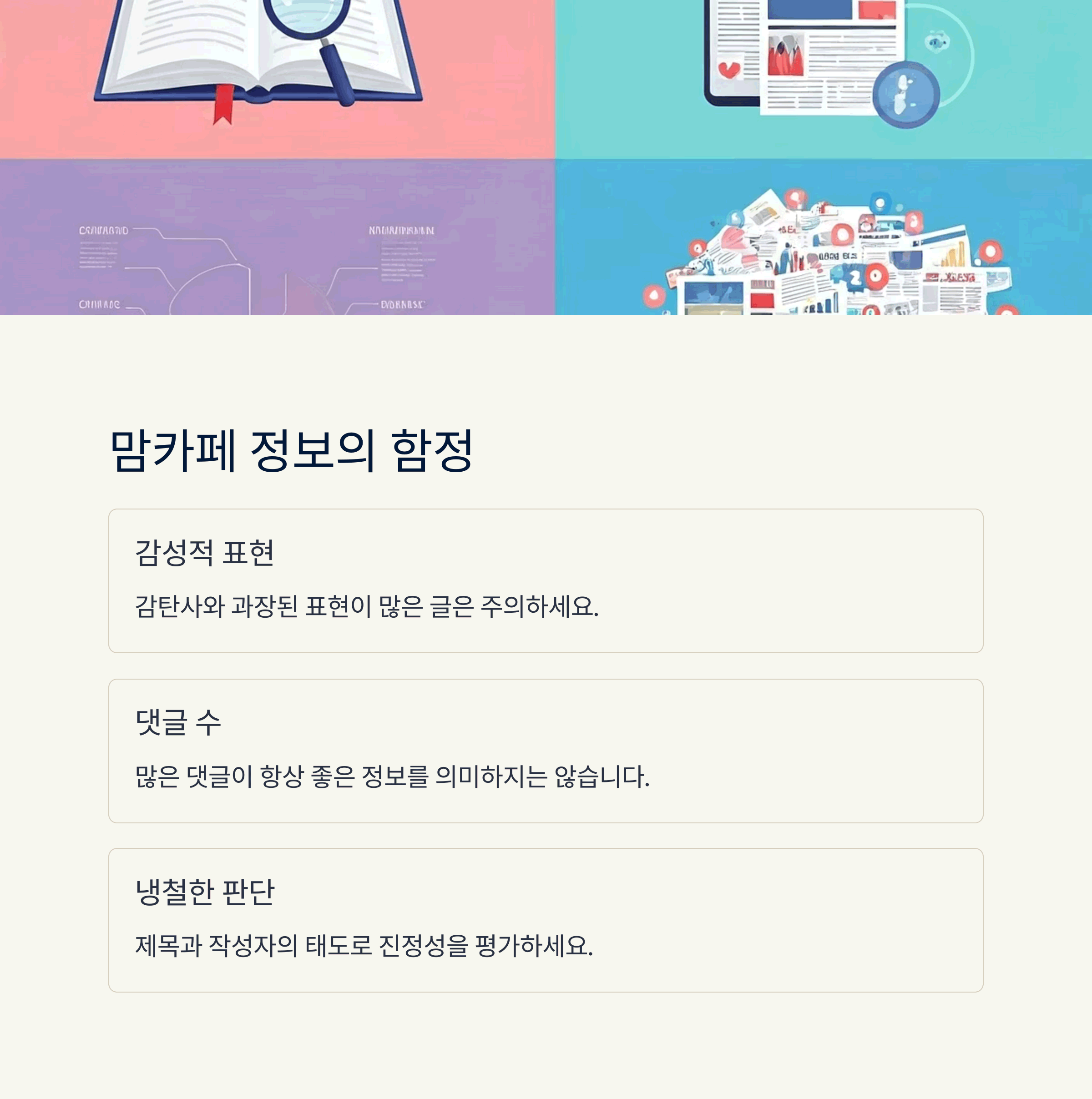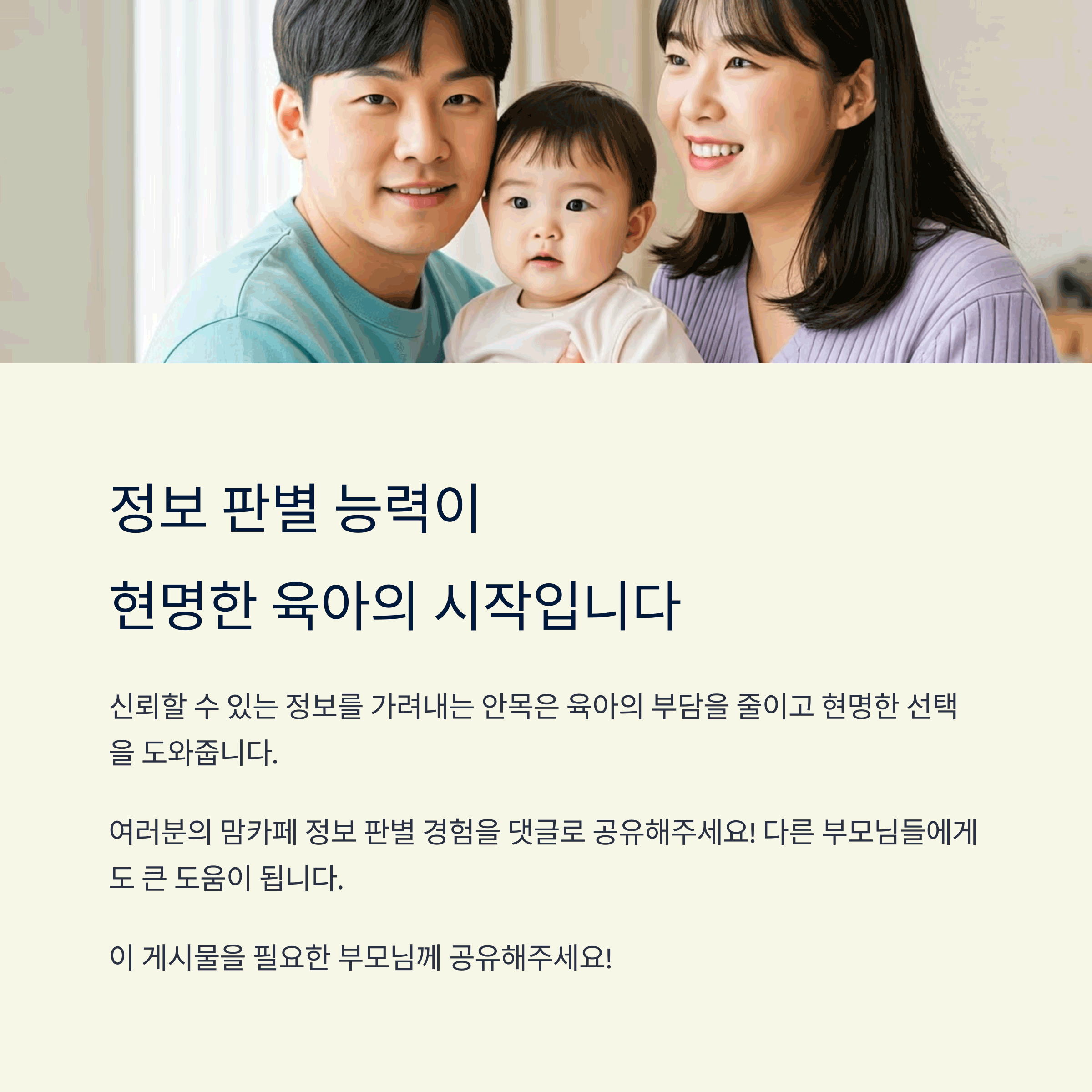 혹시 여러분도 맘카페에서 읽었던 글 중 기억에 남는 정보가 있으신가요? 댓글로 나누어주시면 함께 생각을 나누고, 더 나은 정보 판단 기준을 만들 수 있습니다.