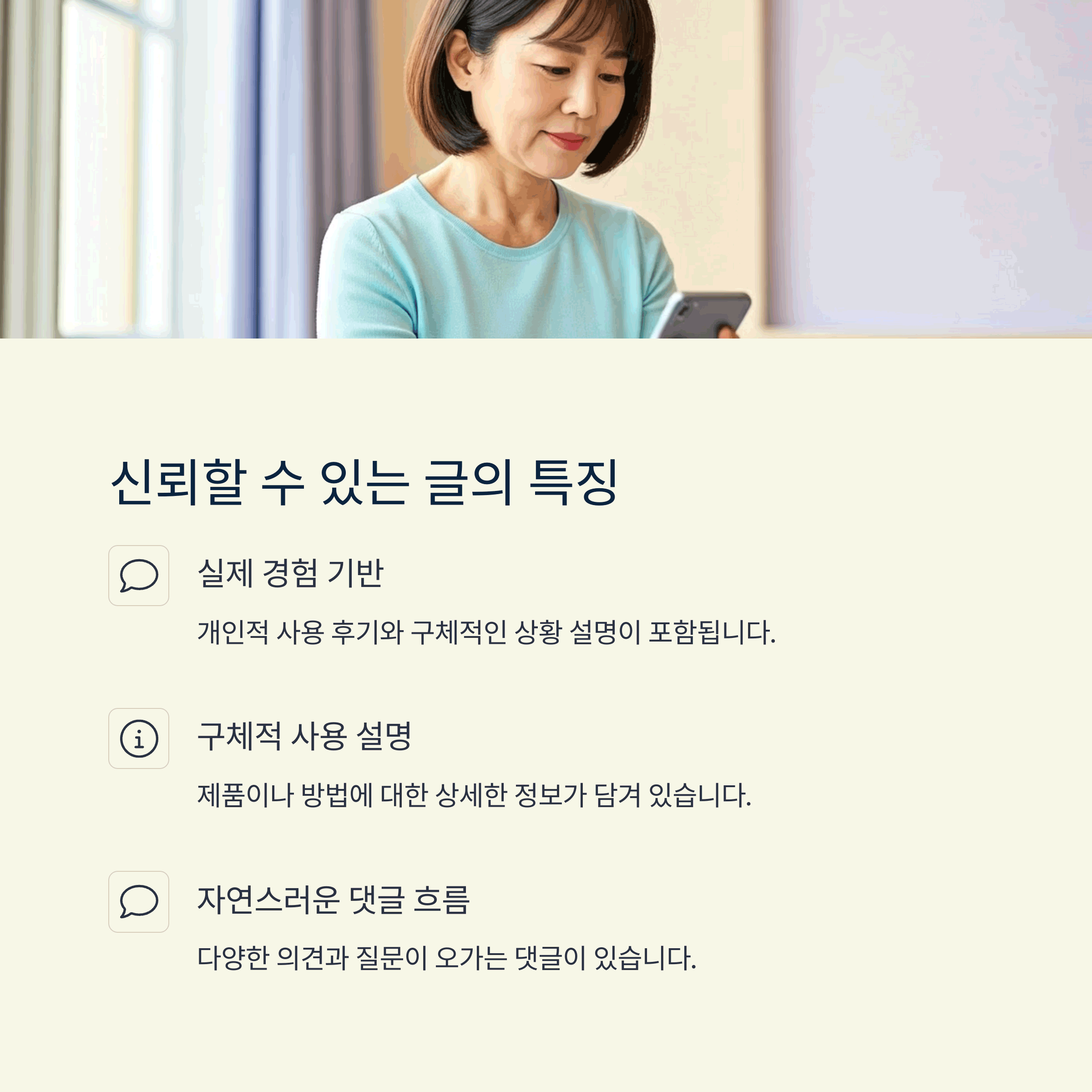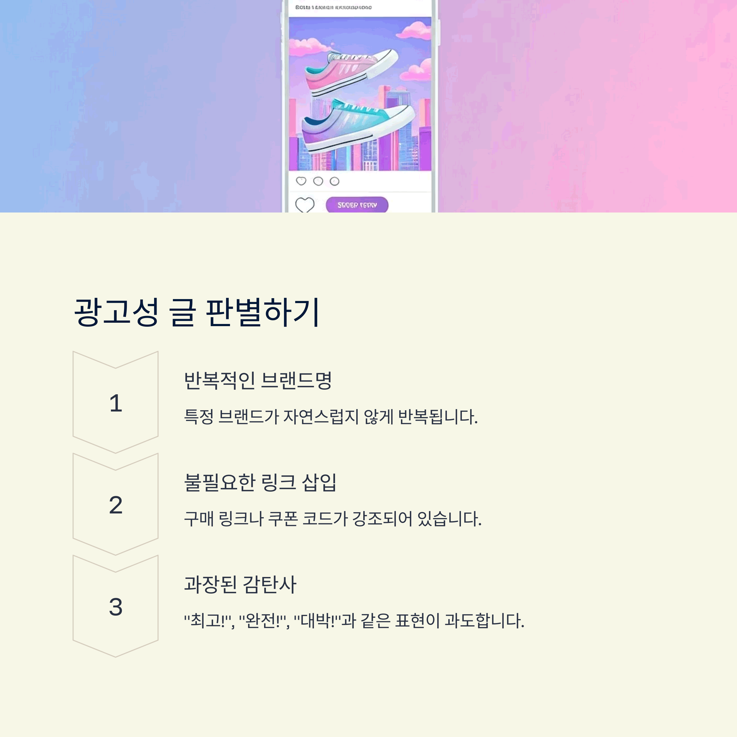 | 실제 후기 기반 정보, 사진 포함, 구체적 설명 | 특정 브랜드 반복, 링크 삽입, 단순 칭찬 위주 | 댓글 구성, 작성자 히스토리, 표현의 진정성 |